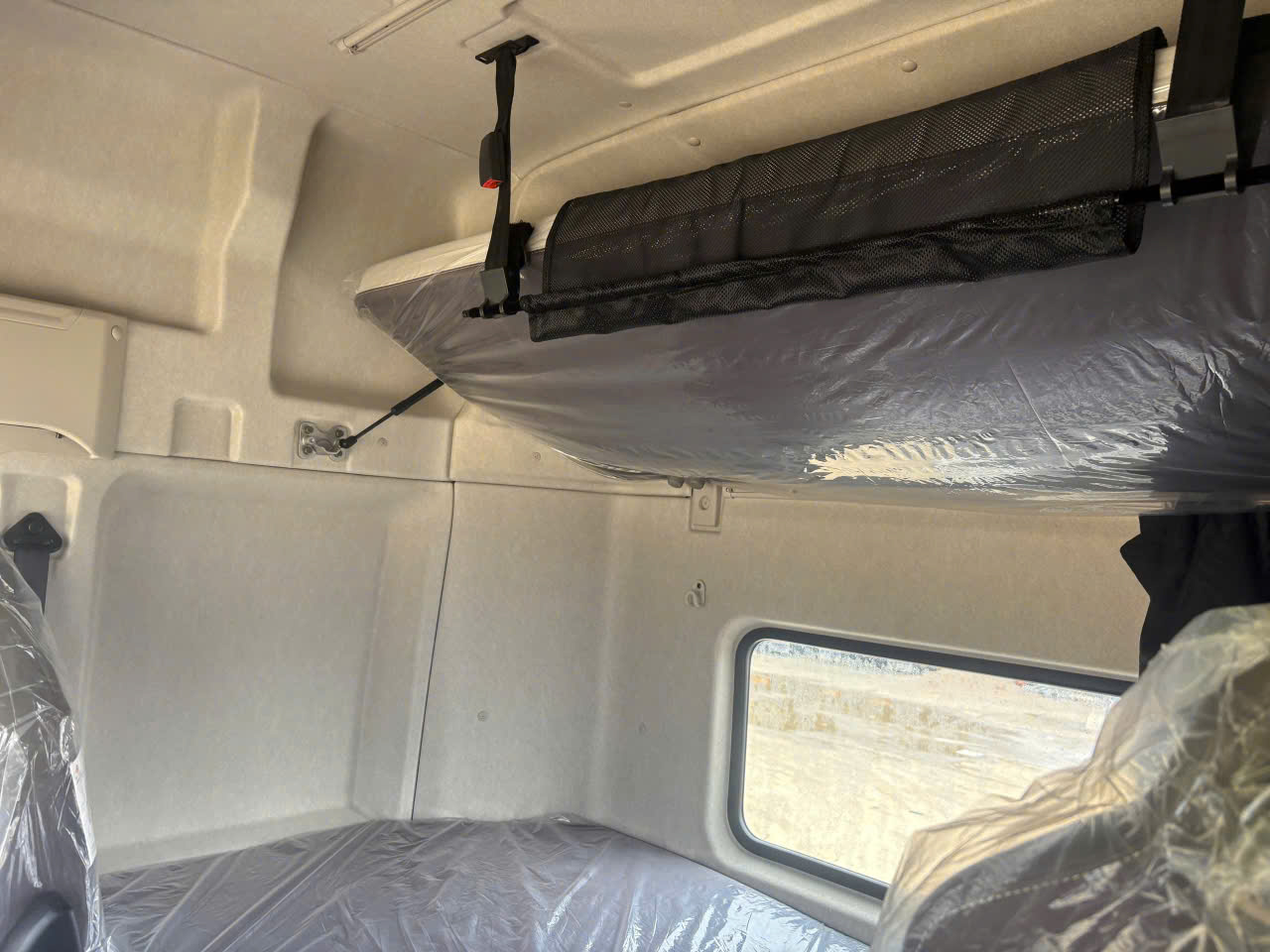 Không gian bố trí: Cabin kép rộng rãi với thiết kế 2 ghế ngồi và 2 giường nằm bọc da êm ái, tạo không gian nghỉ ngơi lý tưởng cho cả tài xế và phụ lái.